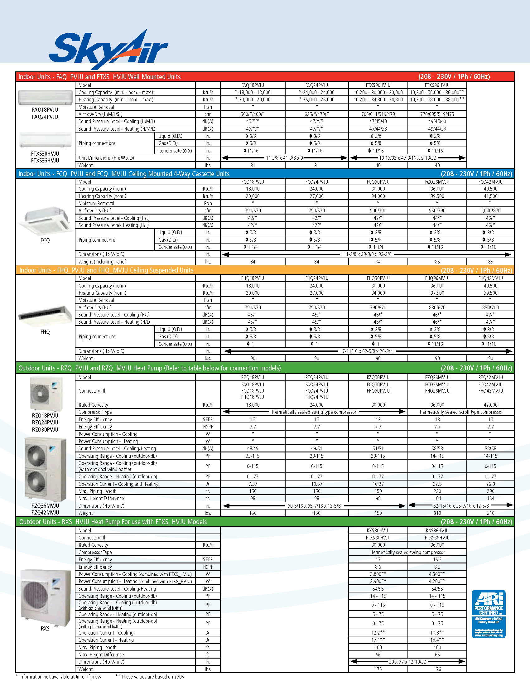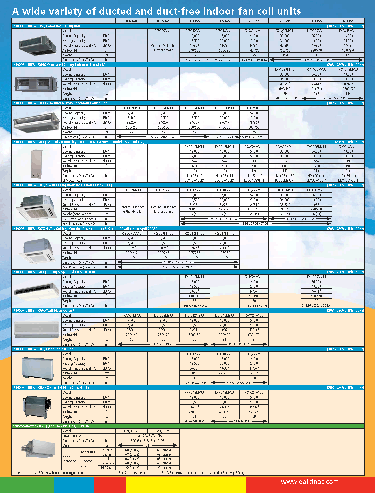 Indoor unit sizes ranging: from 6,000 Btu up to 96,000 Btu.